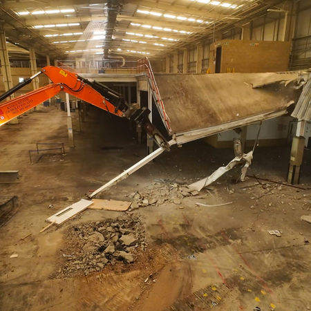 Works began with the removal of all internal office spaces, including partitions, fixtures, and services, followed by the careful dismantling of the mezzanine floor, which remained tied into the main structure. Due to its integration with the building’s framework, it was taken down with precision and strict safety controls.